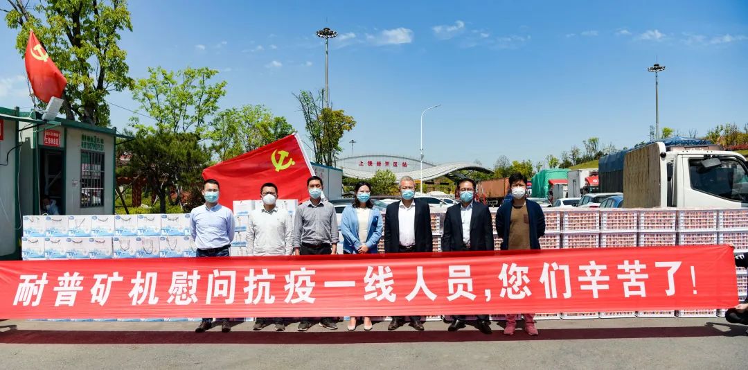 耐普礦機(jī)總經(jīng)理程勝一行對(duì)堅(jiān)守上饒經(jīng)開區(qū)高速口疫情防控一線的工作人員進(jìn)行了慰問(wèn),向他們致以崇高的敬意和親切的問(wèn)候,感謝他們的無(wú)私奉獻(xiàn)和辛勤付出。鄭書記對(duì)公司此次捐贈(zèng)表示衷心感謝,并希望耐普礦機(jī)一如既往加強(qiáng)與當(dāng)?shù)卣?lián)系,助力疫情防控。