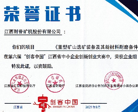 喜報(bào)!耐普礦機(jī)榮獲第六屆【創(chuàng)客中國】大賽江西賽區(qū)一等獎(jiǎng)